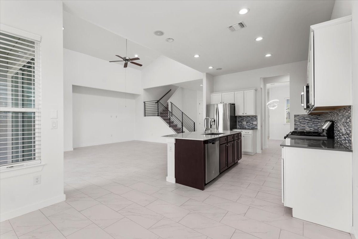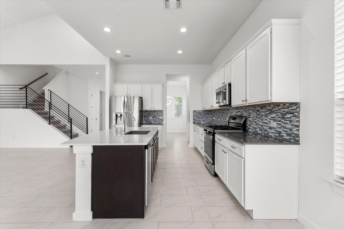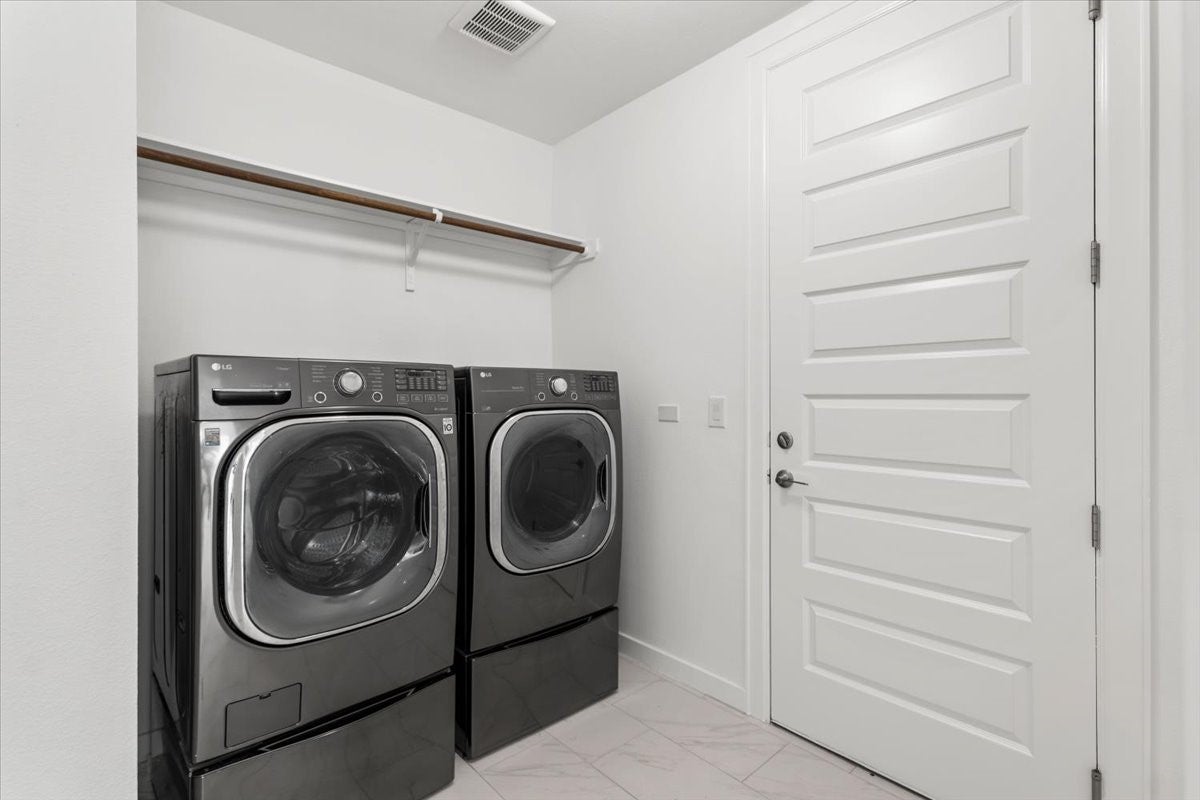This modern 4 bedroom home is located on an oversized lot and features a 2 story living room with tons of natural light! The downstairs features a spacious, open living area plus a formal dining area, an office, a large primary suite, a guest suite with full it's own full bathroom, and the laundry room with washer and dryer included. Upstairs you will find a large loft plus 2 additional bedrooms and a full bath. Located in the original section of the neighborhood, the home is just a short walk from the trailhead for the hike/ bike trail system where you can walk to all the amenities the neighborhood has to offer. The neighborhood amenity center features 2 pools, a full scale gym, a casual hangout room, a conference room, and a full time HOA staff who organize events from yoga to live music. Take advantage of Easton Park's many parks from tiny pocket parks all the way up to Skyline Park, which features 25+ acres, downtown views, multiple playscapes, an amphitheater, a splash pad, and more!