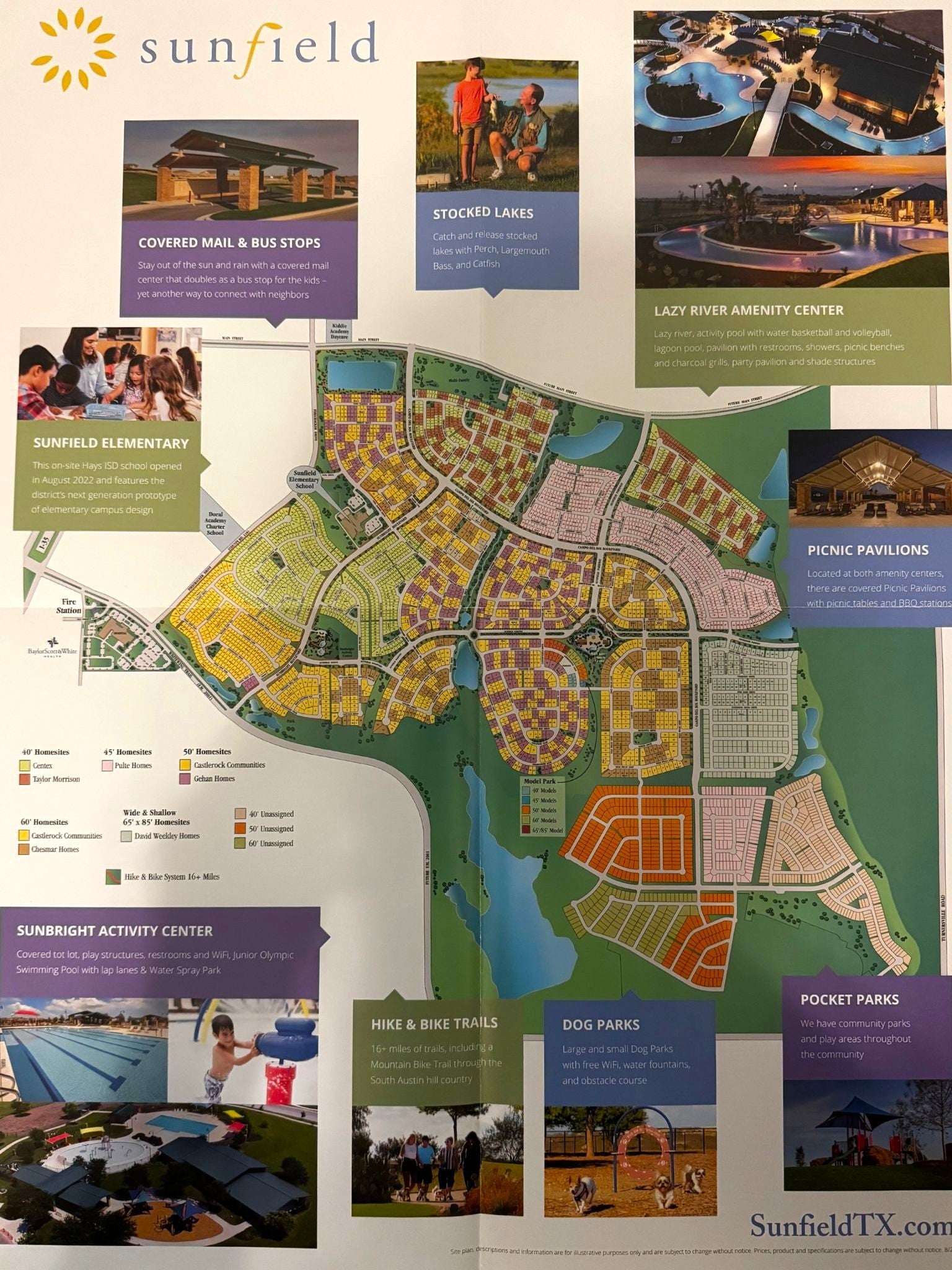 - Community Mailbox, Fishing, Internet Access, Pet Amenities, Playground, Park, Planned Social Activities, Street Lights, Trails/Paths