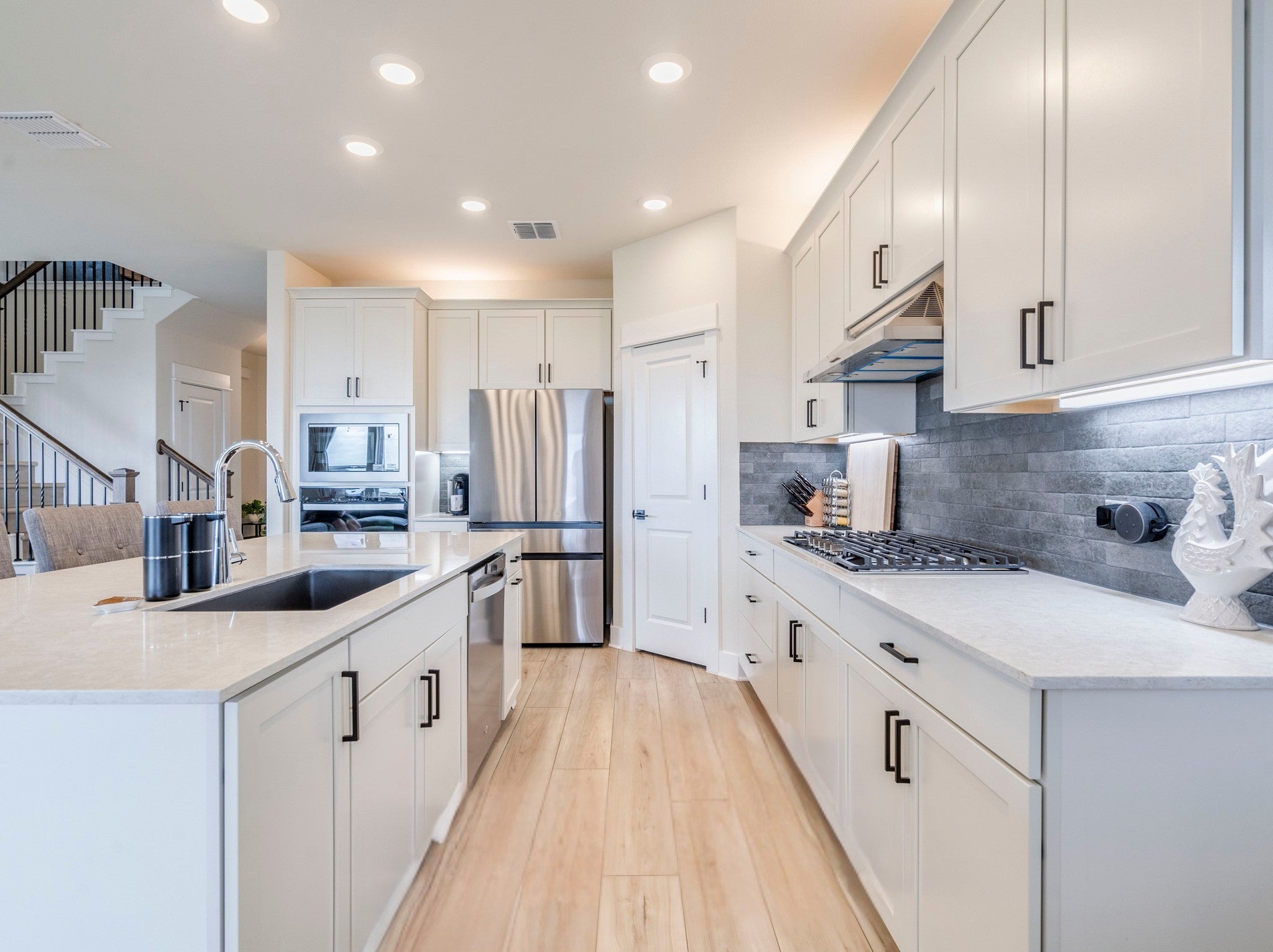 - Built-In Gas Range, Built-In Oven, Dryer, Dishwasher, Exhaust Fan, Disposal, Microwave, Refrigerator, Self Cleaning Oven, Stainless Steel Appliance(s), Tankless Water Heater, Washer