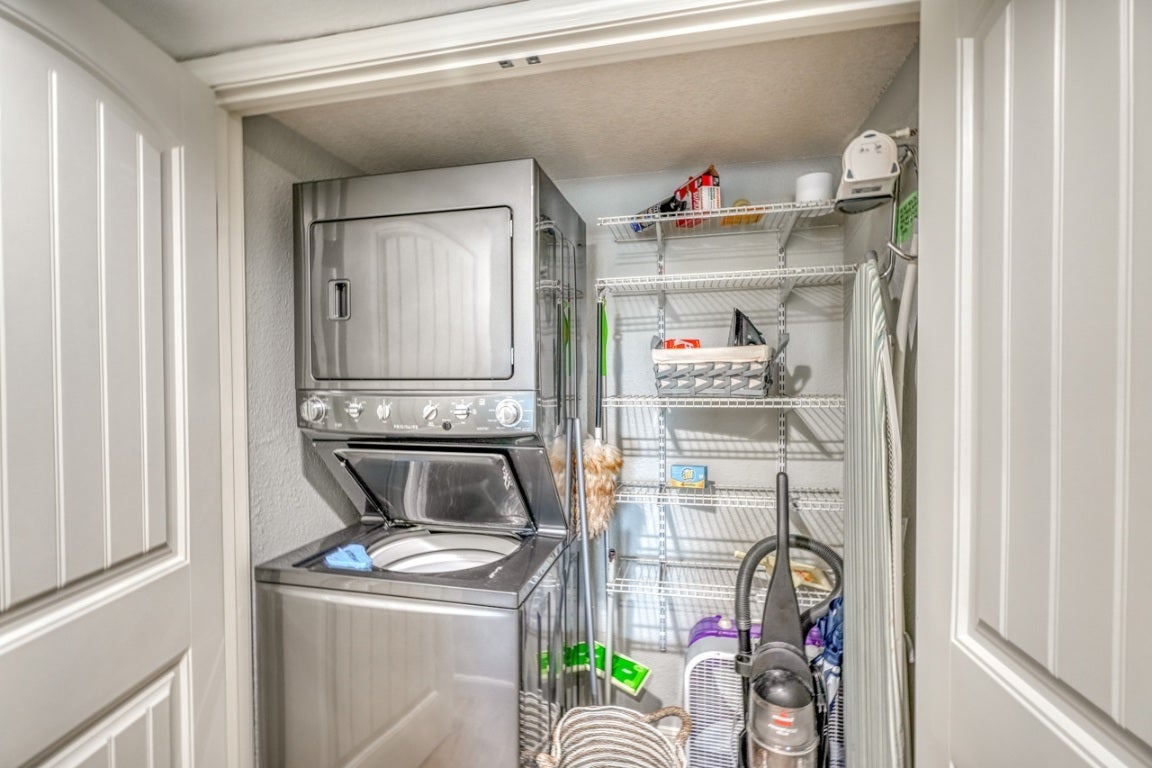 - Cooktop, Dishwasher, Exhaust Fan, Electric Range, Electric Water Heater, Free-Standing Electric Range, Disposal, Microwave, Range, Refrigerator, Washer/Dryer Stacked