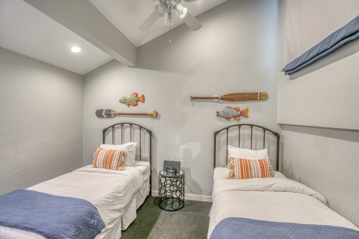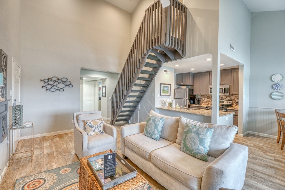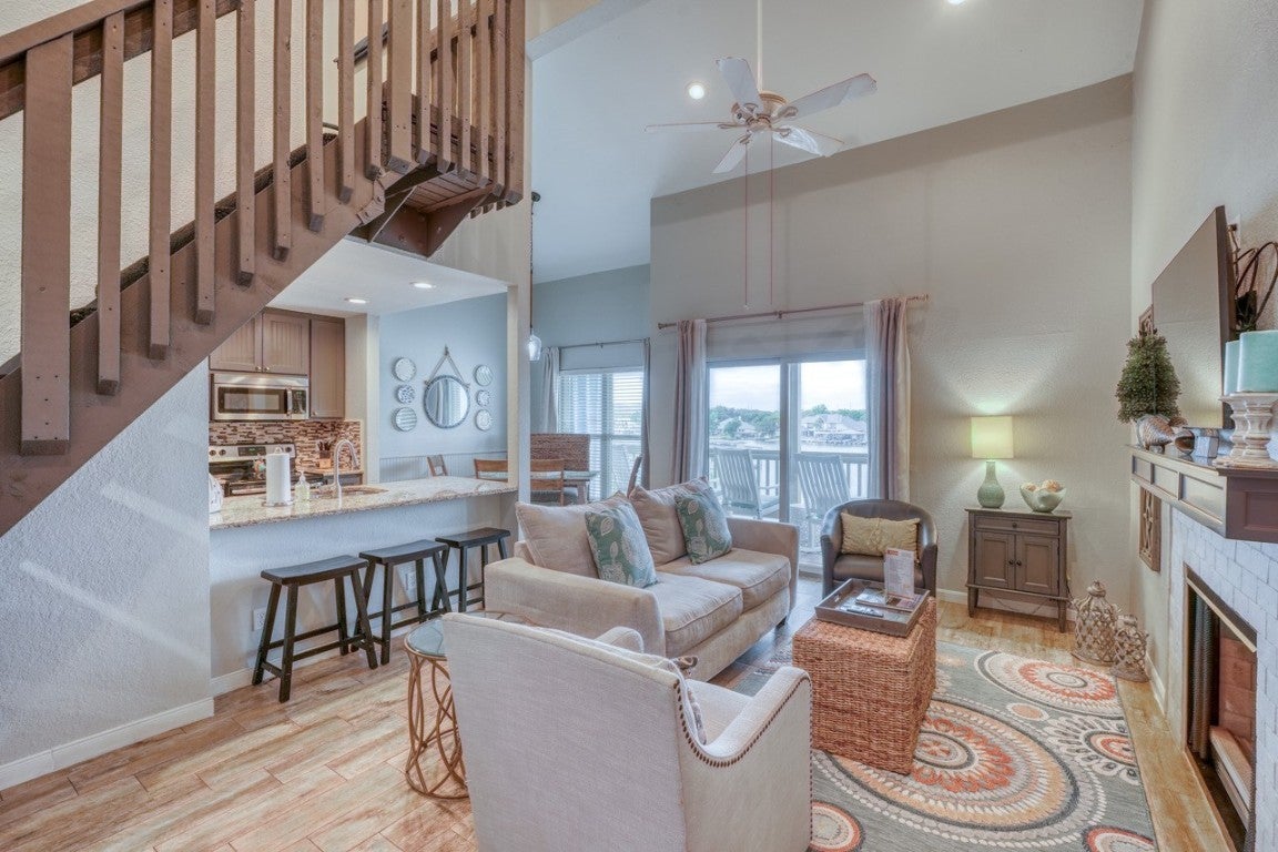 Located in a quiet no wake zone on Lake LBJ, this 3 bedroom, 2 bath condo is a must see. From its panoramic view of the lake to the completely remodeled interior, this property is ready for the most discerning buyer. Wood look porcelain floors are found throughout. The kitchen has been completely remodeled with solid granite counters and stainless steel appliances. The spacious bedrooms on the main floor both have ensuite baths. The 3rd bedroom is found upstairs. On the lake, there are plenty of dedicated docks for Cape Terrace condo owners only. Walk to the Yacht Club for a sandwich by the pool or a sit down dinner in any of several restaurants. A little further down the boulevard you will find the Waterfront Restaurant with marina and unique floating pool outside in Lake LBJ. Be sure to contact the Horseshoe Bay Resort membership office for details on becoming a club member in order to enjoy the private amenities offered by the Resort. This property is being sold totally furnished including everything in the unit with the exception of 4 paintings hanging on the walls.