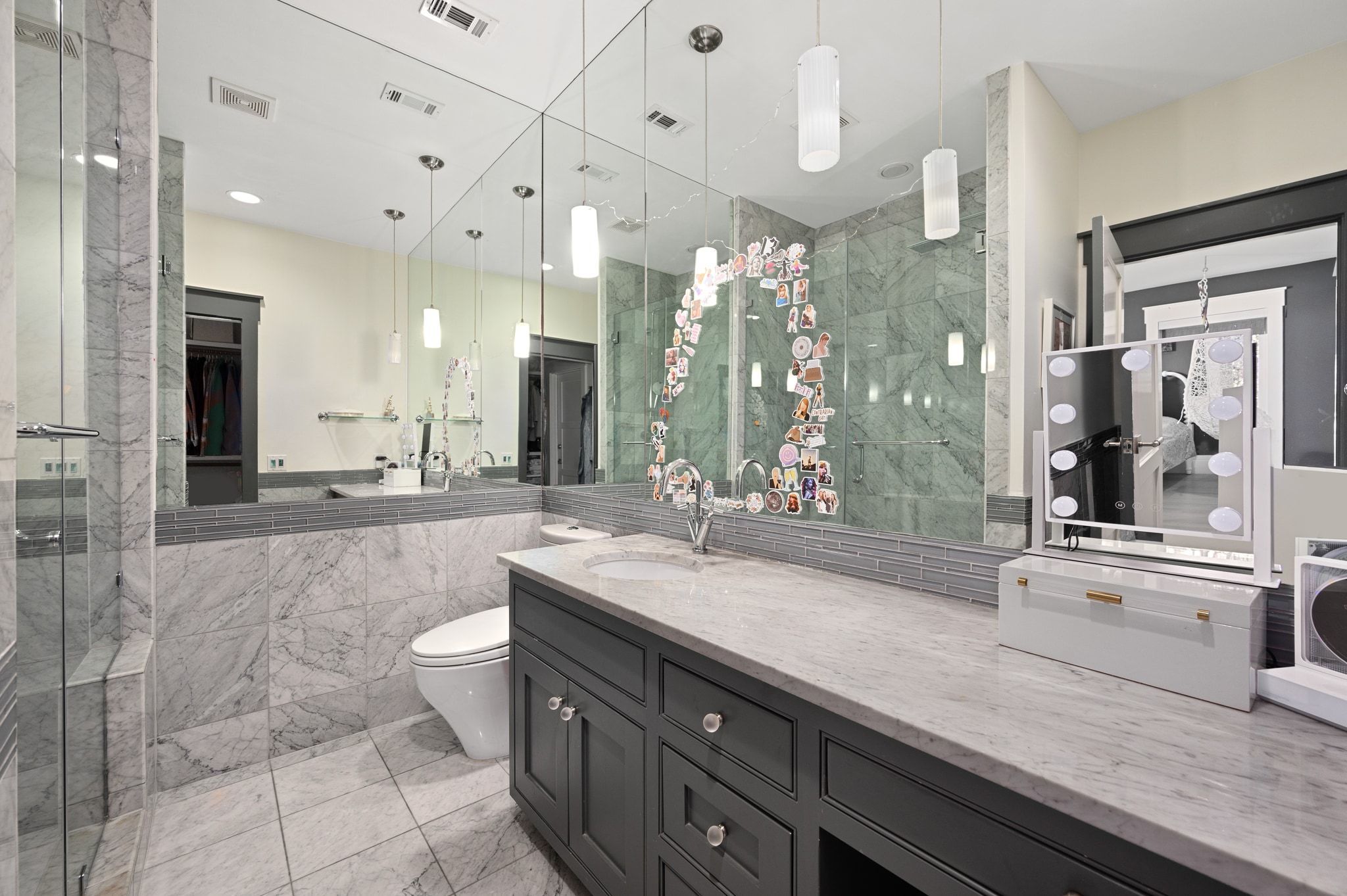 2406 Pemberton Pkwy is situated on a coveted private street with only a few residences, making it a rare offering in the heart of prestigious Pemberton Heights. This 4,874 sqft home (per FPG) combines timeless architecture with refined updates & exceptional outdoor living, all with direct access to Austin’s beloved Shoal Creek Trail. Surrounded by lush, terraced landscaping & mature oaks, the residence is designed to maximize privacy & natural beauty. Expansive windows frame tranquil views of trees, creating a true sense of seclusion, while soaring ceilings and wide-plank wood floors add warmth and elegance. The chef’s kitchen is equipped with Sub-Zero & Wolf appliances, a generous island with seating, butler’s pantry, and abundant custom cabinetry—ideal for everyday living or entertaining on a grand scale. Open living and dining areas flow effortlessly to the screened-in porch with fireplace, perfect for year-round enjoyment. The primary suite is a serene retreat featuring a spa-inspired bath with dramatic book-matched stone, soaking tub, walk-in shower, dual vanities, and an oversized custom closet. Two additional en suite bedrooms & living area provide comfort for family or guests. A spacious media room and a designated office space with pocket doors can also function as the fourth bedroom if desired, offering flexibility for work, play, or additional sleeping space. Outdoor living shines with multiple terraces and an extraordinary east-side parcel featuring a putting green, fire pit, and seating areas, an unmatched extension of the property’s usable space. Additional amenities include a formal dining room, designated laundry room, and a two-car garage with hydraulic lifts to accommodate four vehicles. Located minutes from Downtown Austin, UT, and the city’s top dining and cultural destinations, this property offers a rare combination of privacy, convenience, and connection to nature, an exceptional opportunity in one of Austin’s most sought-after neighborhoods.