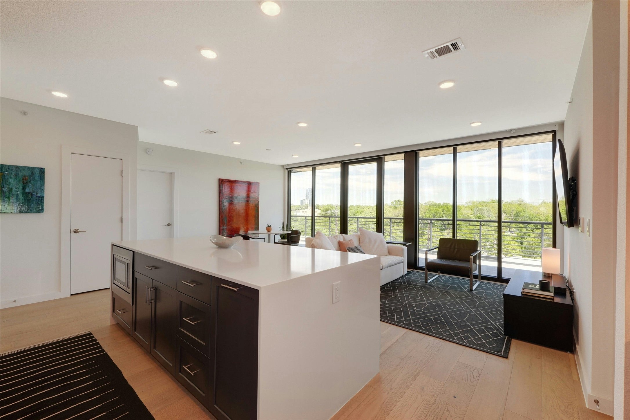 Modern Design, Expansive Terrace, and Walkable South Austin Lifestyle. Experience refined urban living at The Willa in Bouldin Creek, where skyline views, contemporary design, and exceptional outdoor space come together. This top-floor residence, built in 2019 and lightly lived in, offers a like-new feel from the moment you enter. Expansive floor-to-ceiling windows fill the home with natural light while framing striking views of Downtown Austin. A rare private terrace of over 700 square feet extends the living space outdoors and perfect for entertaining, unwinding, or enjoying the city lights. The open-concept layout features a chef-inspired kitchen with quartz waterfall countertops, premium appliances, motorized shades, and streamlined modern cabinetry. Two well-separated bedrooms provide privacy and flexibility for guests or a home office. Additional features include two reserved underground parking spaces, a secure package room, conference area, and a thoughtfully designed courtyard with grilling stations. Step outside and enjoy a walkable lifestyle with acclaimed nearby destinations such as Elizabeth Street Cafe, Fresa’s, Lenoir, Dish Society, Bouldin Creek Cafe, Once Over Coffee, Neighborhood Sushi, and Swedish Hill just moments away, with Congress Avenue and Downtown Austin only minutes from your door. More than a residence, this home offers a seamless blend of light, design, and location in one of Austin’s most sought-after neighborhoods.