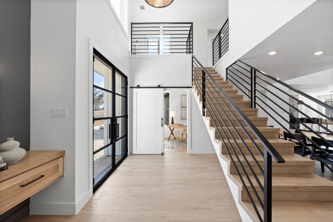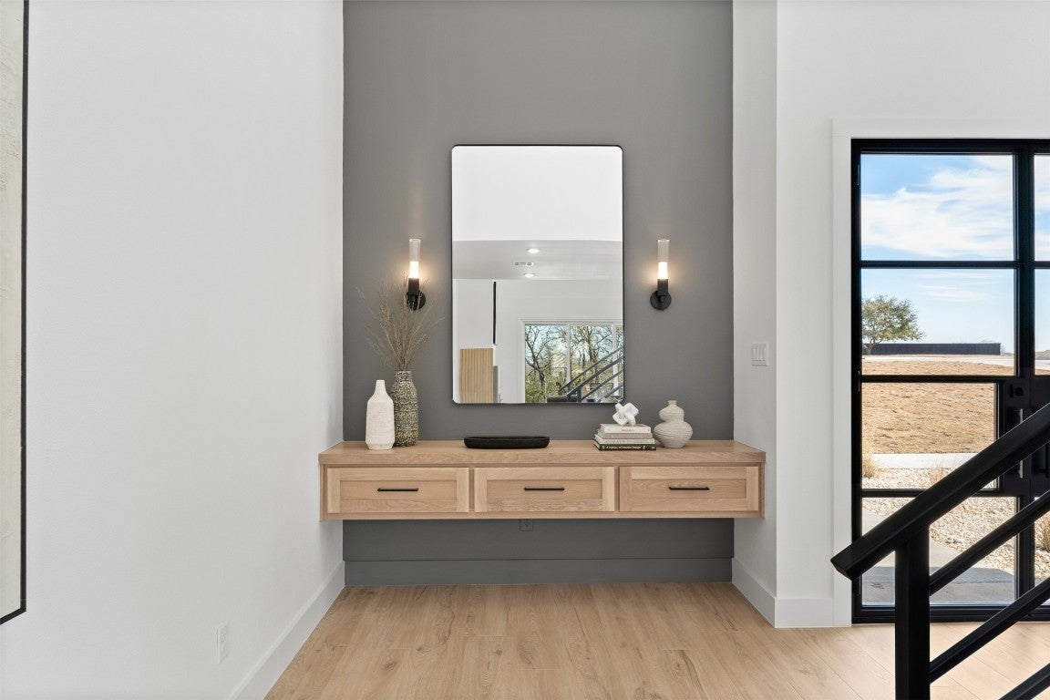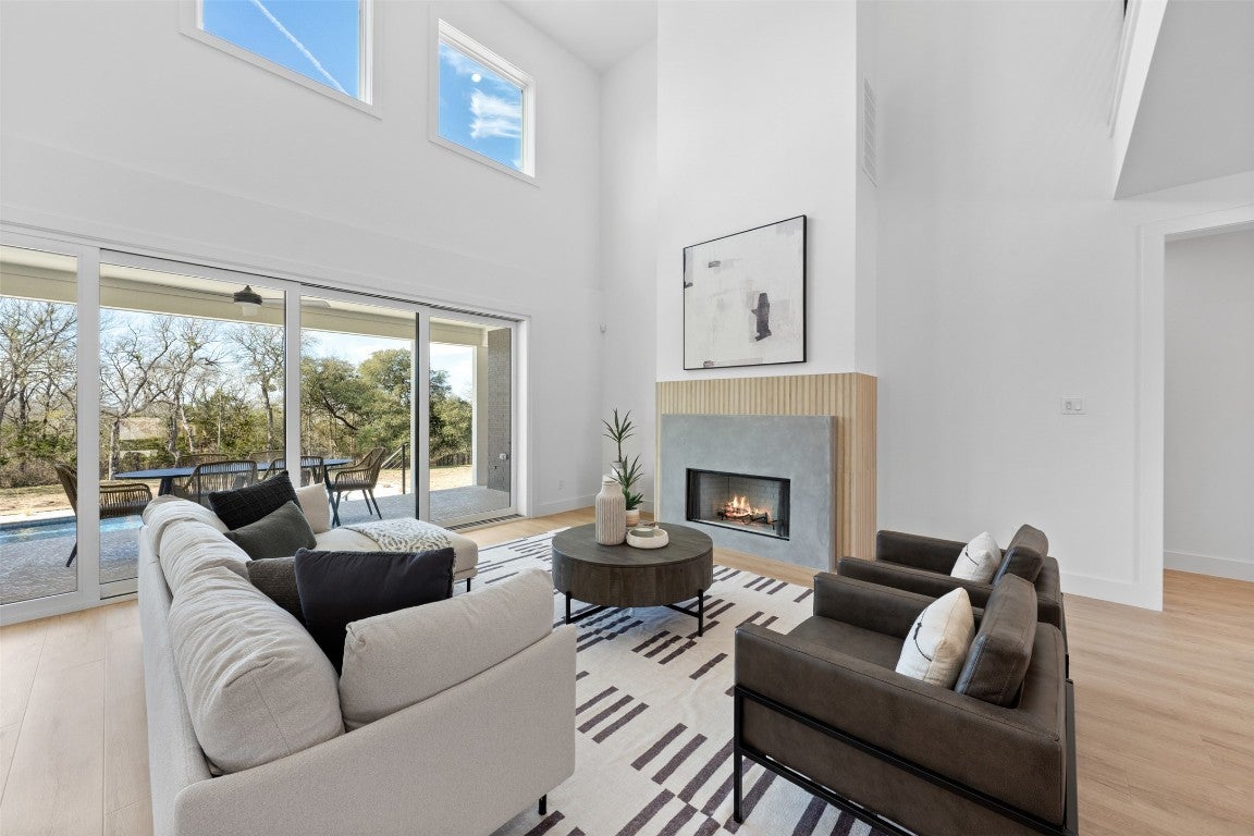 Presenting beautiful space on a beautiful lot from Brandon Whatley Homes! This stunning new modern farmhouse sets the bar for luxury and design in Central Texas. With nearly 4,000 square feet, this 4 bedroom, 3.5 bathroom home features accent dark gray interiors that create a sleek, sophisticated atmosphere. The deep tones provide a dramatic contrast to the warm wood accents. The chef’s kitchen with a working pantry is stylish and functional, combining an impressive place to host, along with the prep space you need. A 16-foot sliding glass door connects the indoor and outdoor spaces, creating the ultimate entertaining experience. Multiple bonus spaces offer dedicated places for your hobbies and fun. The air-conditioned third garage bay is outfitted as a home gym. Step outside to a resort-style backyard featuring a pristine swimming pool, a covered patio with an outdoor kitchen, and an adjacent outdoor living area beneath a large metal pergola with adjustable roof louvers. The mature trees lining the rear property line provide a peaceful and private backdrop. With spray foam insulation for efficiency and every detail carefully curated, this property from Brandon Whatley Homes is a standout in design and craftsmanship. Located in a rural estate type neighborhood, just outside of Belton, this home is a must-see!